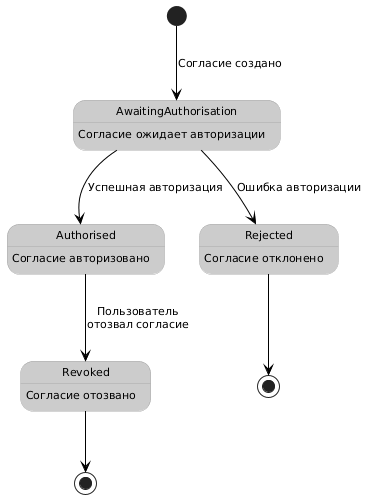 Изменение состояний ресурса согласия на доступ к счету соответствует следующей модели: